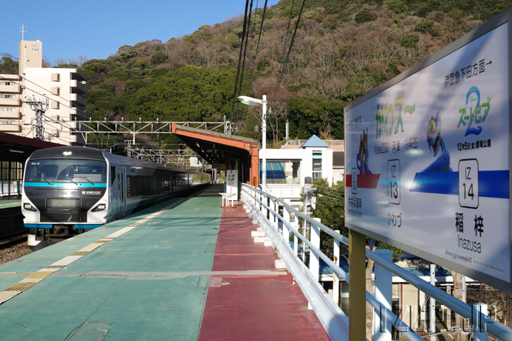 最後に海の眺望です。下りホームのやや伊豆急下田駅よりでこの様に河津の浜を見ることが可能です。