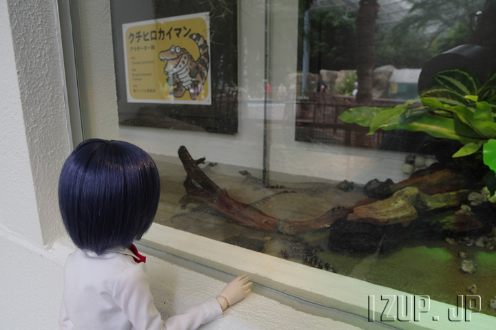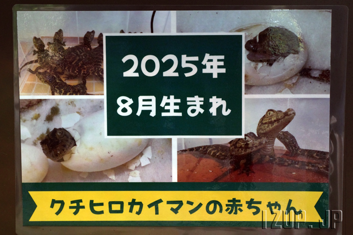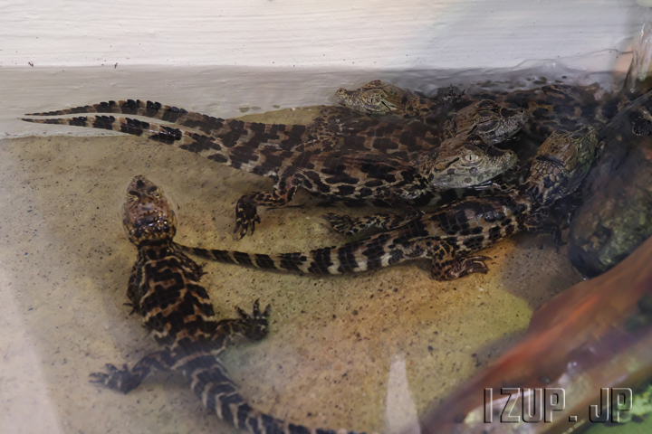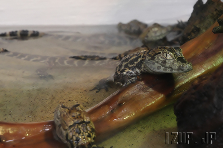 熱川バナナワニ園では8月にクチヒロカイマンの赤ちゃんが生まれ、9月13日から一般公開が始まっています。という訳で早速見てきました。ワニ園を入って階段を降りた右側の水槽で展示されています。