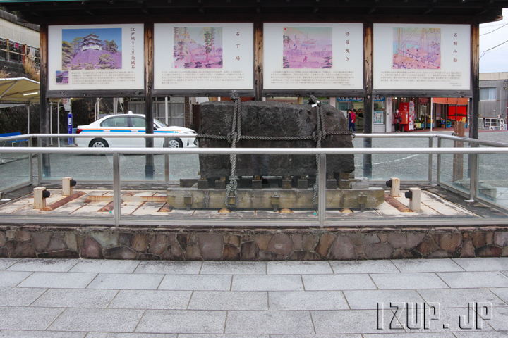 江戸城築城時、ここ伊豆半島東側は石切り場でした。伊豆の山々で切り出した石垣の石を、写真の様な木製の枠に載せ人力で海岸線まで運びました。そしてこれを船に積み替えて江戸まで運んでいたのです。
