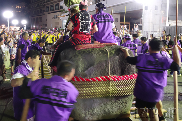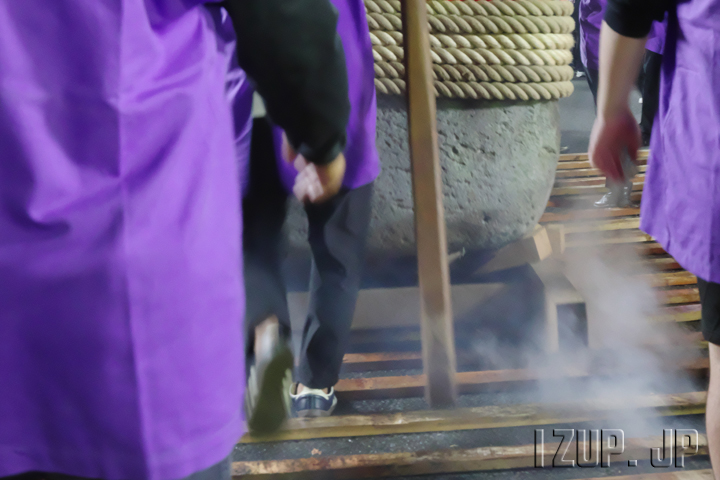 ちなみにお祭りで曳く石の重さは約12トン、乗用車約10台分の重さです。ちなみに先程の伊豆稲取駅前のものは小ぶりで約3トンです。