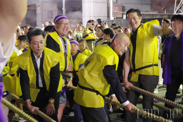 町長の超絶楽しそうな顔が撮れたので見て欲しい・・・みたいな写真も撮れました。曳き手も左右で見守る参加者もみんなが楽しそうです。