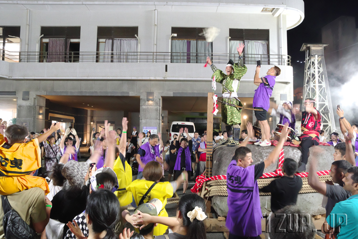 石の上の侍大将を務めたのは「六つの貸切風呂を湯めぐり ふたりの湯宿 湯花満開」の若旦那、石島正和専務です。東伊豆町の関係者から毎年人選されている様です。