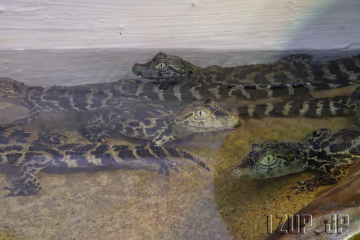 そして8月に生まれたクチヒロカイマンの赤ちゃんも展示中です。3か月も経つと尻尾側が太くなったり少しワニらしくなりましたが、成人ワニと比較するとまだまだ赤ちゃんの可愛らしさを残しています。