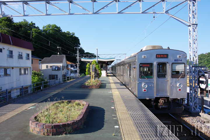 冒頭のキンメ電車は下り電車が海側を走り、鉄道の原則通り左側通行でした。しかしこの写真の様に上り電車が海側を走る右側通行が発生するのが一線スルー構造です。