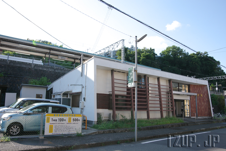 駅舎は築堤の上にある線路の脇にあり、階段で繋がれています。駅周辺は伊東の街の南側という雰囲気の場所にあり、開けた印象です。駅舎は開業当時からのものの様です。