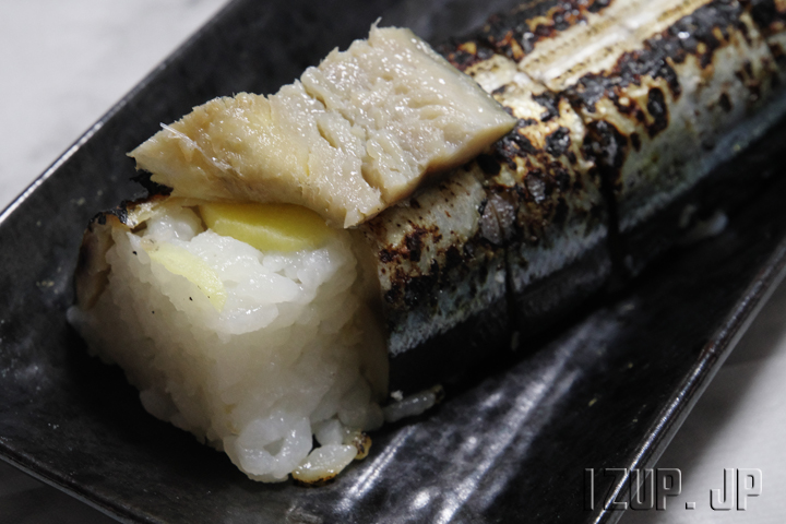 そして特筆すべきは中に隠された生姜のスライス!酢飯、さんま、生姜の絶妙なハーモニーがこのさんまの押し寿司の美味しさの秘密で、ぶっちゃけ止まらなくなりますw。